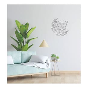 Quadro Decorativo Mdf Cinza Borboletas 40X20Cm
