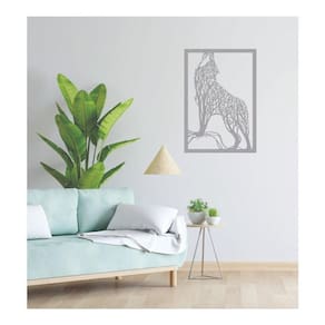 Quadro Decorativo Mdf Cinza Lobo 40X20Cm
