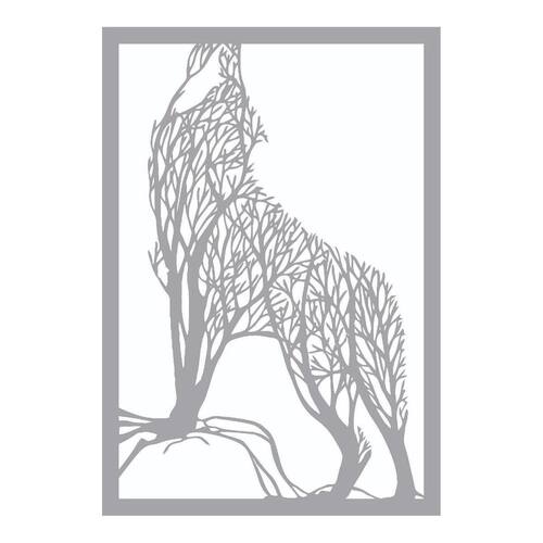 Quadro Decorativo Mdf Cinza Lobo 40X20Cm