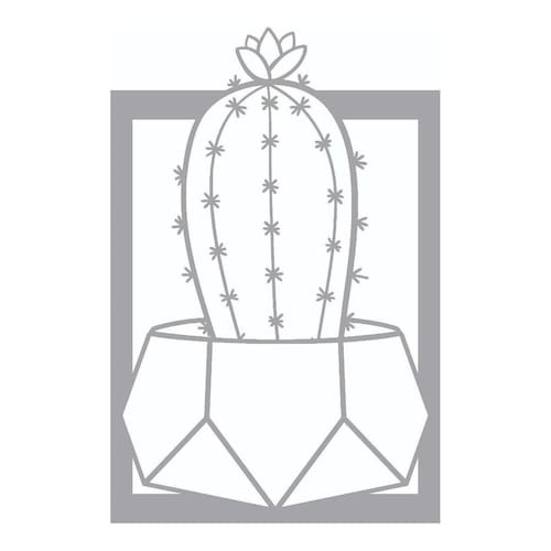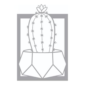 Quadro Decorativo Mdf Cinza Vaso De Cacto 40X20Cm