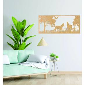 Quadro Decorativo Mdf Cru Cavalos No Campo 40X20Cm