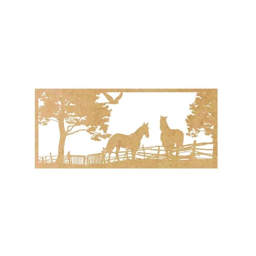 Quadro Decorativo Mdf Cru Cavalos No Campo 40X20Cm