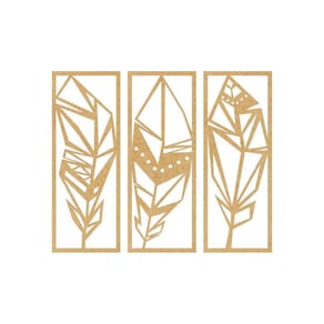 Quadro Decorativo Mdf Cru Trio Folhas Maori 40X20Cm