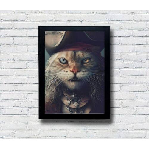 Quadro Decorativo MDF Gato Pirata - Modelo: 05 / Moldura: Preta / Tamanho: 20x28