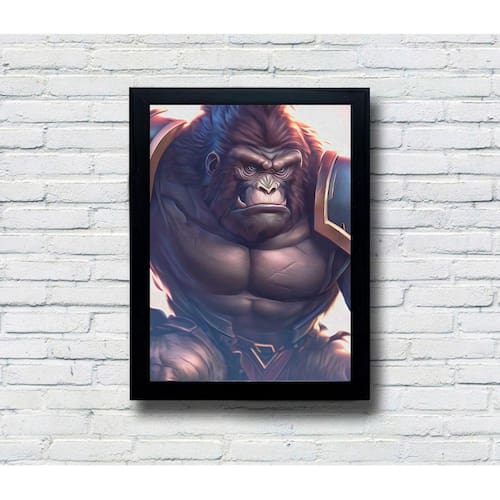 O quadro decorativo que vai além das expectativas, feito em MDF. Escolha entre a versão com moldura ou sem moldura, e desfrute da nossa impressão de alta qualidade, que oferece cores vibrantes e arte exclusiva para um impacto duradouro do "Gorila Guerreiro".