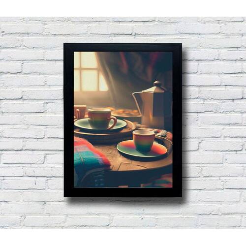 Quadro Decorativo MDF Hora do Café - Modelo: 02 / Moldura: Preta / Tamanho: 20x28