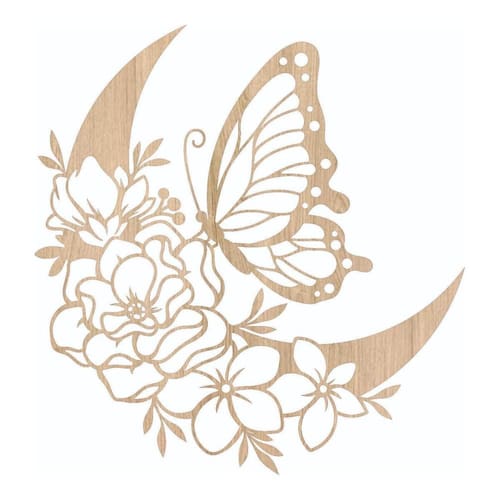 Quadro Decorativo Mdf Marfim Borboleta Floral 40X20Cm