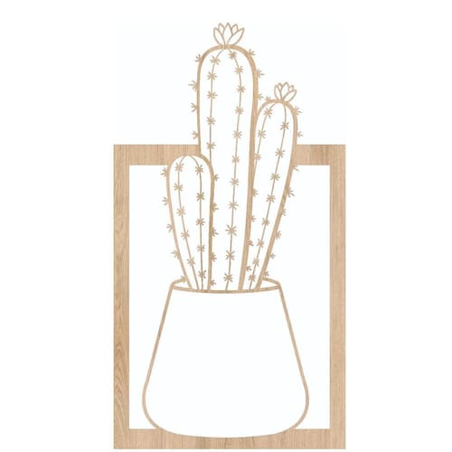 Quadro Decorativo Mdf Marfim Vaso De Cactos 40X20Cm