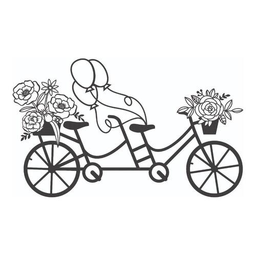 Quadro Decorativo Mdf Preto Bicicleta Floral 40X20Cm