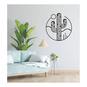 Quadro Decorativo Mdf Preto Cacto Deserto 40X20Cm