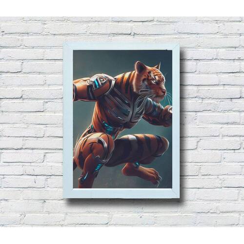 Celebre a estética requintada com nosso quadro decorativo de alta qualidade feito em MDF. Escolha entre moldura ou sem moldura, e veja como a impressão premium intensifica as cores vibrantes e a arte exclusiva do "Tigre Guerreiro".