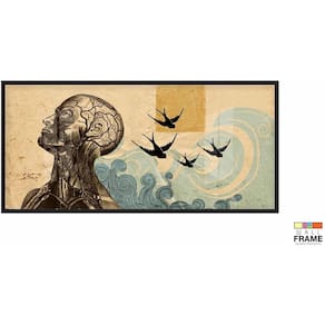 Quadro Decorativo Medicina Cérebro Sépia 130x60 Moldura Preta 2x2