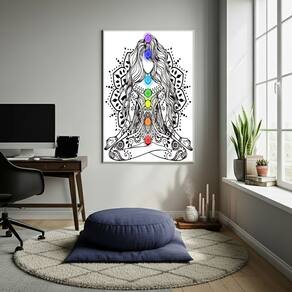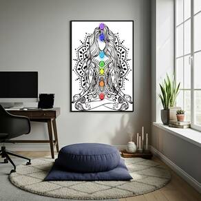 Quadro Decorativo Meditação Aura - 70x50 cm - Cor: Moldura Preta