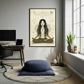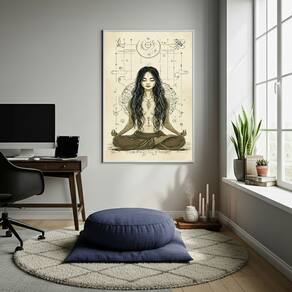 Quadro Decorativo Meditação e Yoga - 70x50 cm - Cor: Moldura Preta