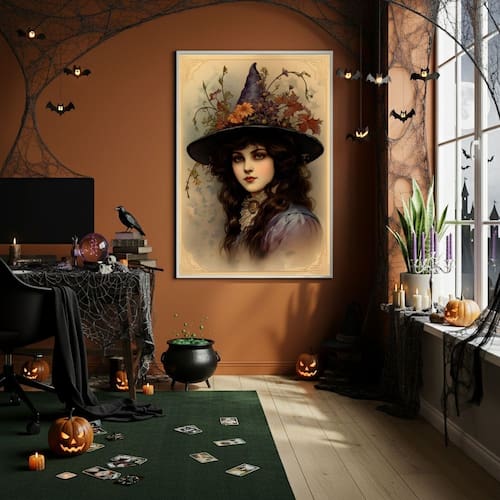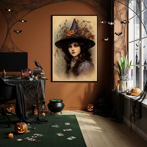 Quadro Decorativo Menina Bela Bruxa Vintage - 70x50cm - Cor: Moldura Preta
