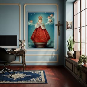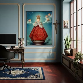 Quadro Decorativo Menino Jesus de Praga - 70x50cm - Cor: Moldura Preta