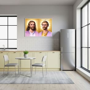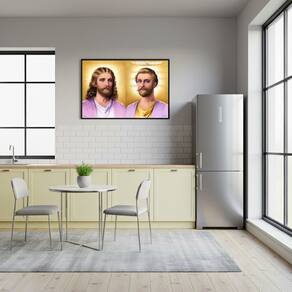 Quadro Decorativo Mestres Jesus e Saint Germain - 50x70cm - Cor: Moldura Branca