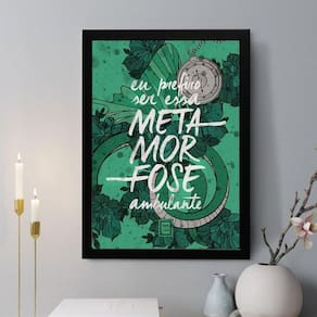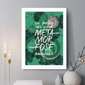 Quadro decorativo metamorfose ambulante 24x18cm Cor: moldura branca Informações do produto tire todas as suas dúvidas no descritivo abaixo: decoração para quarto, sala, cozinha, escritório, área gourmet e muito mais. Chega de paredes vazias medidas - cada peça tem 24x18cm a5 . Material do papel - papel fotográfico brilhante de altíssima resolução acabamento - todos os quadros são acompanhados de uma película de acetato para proteção da imagem. - os quadros são embalados de forma segura com plástico bolha com camada dupla de acordo com o tamanho dos quadros. Garantia - garantia de 3 meses. Meu quadro chegou. Como posso fixá-lo Você precisa apenas de um martelo e um prego, pois os quadros já vão acompanhados de penduradores. Esta é a forma mais indicada. Caso prefira, você pode utilizar uma fita dupla face neste caso, sugerimos de alta qualidade para evitar que descole e seu quadro caia . Como posso limpar meu quadro A limpeza é feita como um móvel comum da sua casa. Apenas um pano seco ou espanador são suficientes para tal