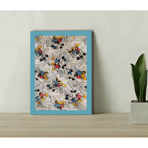 Quadro Decorativo Mickey-Minnie + Vidro 33x25 Sala Quarto - Cor: Azul