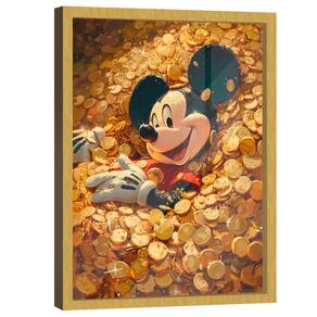 Quadro Decorativo Mickey Mouse Ouro Moldura Dourada - 150x100cm -