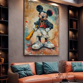 Quadro Decorativo Mickey Mouse Rebelde Moldura Dourada - 84x54cm -