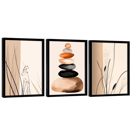 Quadro Decorativo Minimalismo Linhas de Grama e Caule Moldura Preta - 84x54cm -