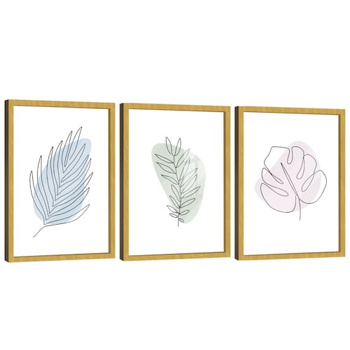 Quadro Decorativo Minimalista Abstrato Floral Moldura Dourada e Vidro - 180x105cm -