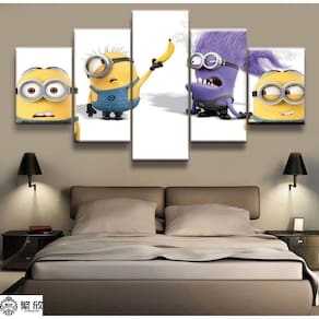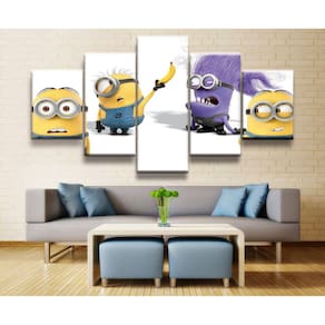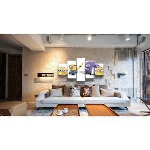 Quadro Decorativo Minions 5 peças 130x65 cm em tecido