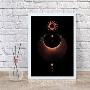 Quadro decorativo místico eclipse 33x24cm - com vidro Moldura: madeira branca Informações do produto tire todas as suas dúvidas no descritivo abaixo: decoração para quarto, sala, cozinha, escritório, área gourmet e muito mais. Chega de paredes vazias medidas - cada peça tem 33x24cm a4 . Material do papel - papel fotográfico brilhante de altíssima resolução acabamento - todos os quadros são acompanhados de vidro para proteção da imagem. - moldura em madeira maciça na cor preta ou branca conforme produto escolhido e pendurador . - os quadros são embalados de forma segura com plástico bolha com camada dupla de acordo com o tamanho dos quadros. - de 3 meses. Meu quadro chegou. Como posso fixá-lo Você precisa apenas de um martelo e um prego, pois os quadros já vão acompanhados de penduradores. Esta é a forma mais indicada. Como posso limpar meu quadro A limpeza é feita como um móvel comum da sua casa. Apenas um pano seco ou espanador são suficientes para tal Marca: Não Informado