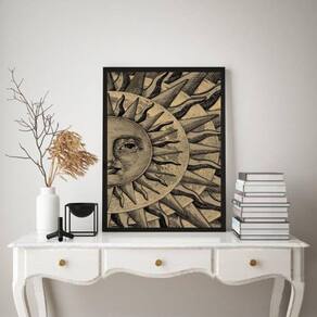 Quadro decorativo mistico sol - metade 24x18cm - com vidro Cor: moldura branca Informações do produto tire todas as suas dúvidas no descritivo abaixo: decoração para quarto, sala, cozinha, escritório, área gourmet e muito mais. Chega de paredes vazias medidas - cada peça tem 24x18cm a5 . Material do papel - papel fotográfico brilhante de altíssima resolução acabamento - todos os quadros são acompanhados de vidro para proteção da imagem. - moldura em madeira maciça na cor preta ou branca conforme produto escolhido e pendurador . - os quadros são embalados de forma segura com plástico bolha com camada dupla de acordo com o tamanho dos quadros. - de 3 meses. Meu quadro chegou. Como posso fixá-lo Você precisa apenas de um martelo e um prego, pois os quadros já vão acompanhados de penduradores. Esta é a forma mais indicada. Como posso limpar meu quadro A limpeza é feita como um móvel comum da sua casa. Apenas um pano seco ou espanador são suficientes para tal Marca: Não Informado
