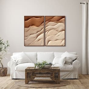 Quadro Decorativo Modelo Areia com 2 telas cm ou cm para Sala, Quarto, Banheiro, Escritório, Hall, Hall de Entrada, Estúdio, Salão, Clínica.Especificações Técnicas:Modelo: Areia;Material da Imagem: Papel premium fotográfico de alta qualidade;Material da Moldura: Madeira de reflorestamento revestida;Espessura da Moldura: 2,7cm de profundidade e 1,5cm frontal;Medidas: cm ou cm;Acabamento: Fita Kraft;Acompanha: Suporte de serrilha para quadros e parafusos.Transforme seu espaço com elegância e sofisticação! Não perca a oportunidade de adquirir o exclusivo Quadro Decorativo Modelo Areia com 2 Telas a um preço incrível! Acompanha Fixação para Parede: Sim Ambiente Principal: Quarto Cor: Marrom Cor do Produto: Marrom Espessura: 20 mm Espessura do Vidro: 3 mm Itens Inclusos: 1 Quadro com 2 Telas Marca: ARTE PRÓPRIA Material Principal: Madeira Maciça Medida de Cada Item: 60cm x 90cm Origem do Produto: Nacional Peso: 10 kg Possui Paspatur: Não Possui Vidro: Sim Tema da Estampa: Abstrato Tipo de Quadro: Kit de quadros Vidro é Anti-Reflexo: Não Marca: ARTE PRÓPRIA