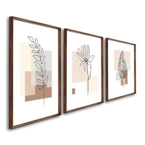 Quadro Decorativo Modelo Floral Iv com 3 Telas de Parede para Sala Quarto Escritório 60cm X 90cm Marrom