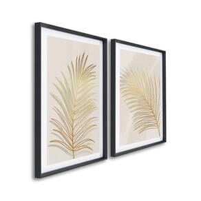 Quadro Decorativo Modelo Folha Dourada com 2 Telas para Sala, Quarto, Escritório 60cm X 90cm Preto