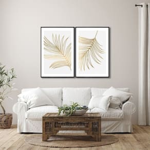 Quadro Decorativo Modelo Folha Dourada com 2 telas cm ou cm para Sala, Quarto, Banheiro, Escritório, Hall de Entrada, Casa de Praia, Lavabo, Camarim.Especificações Técnicas: Modelo: Folha Dourada;Medidas: cm ou cm;Material da Imagem: Papel premium fotográfico de alta qualidade;Material da Moldura: Madeira de reflorestamento revestida;Espessura da Moldura: 2cm de profundidade;Acabamento: Fita Kraft;Acompanha: Suporte de serrilha para quadros e parafusos.Expresse sua linguagem visual, torne seus ambientes mais bonitos e confortáveis!