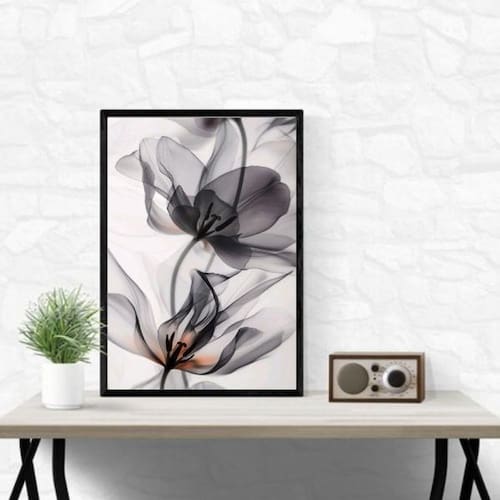 Quadro Decorativo Moderno Flor Cinza 33X24Cm