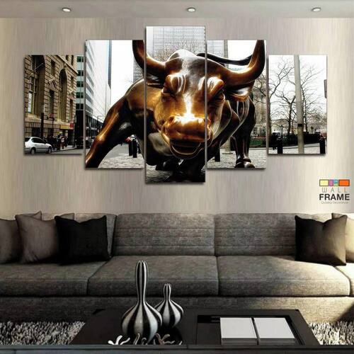 Quadro Decorativo Moderno Touro De Wall Street 130x63 cm