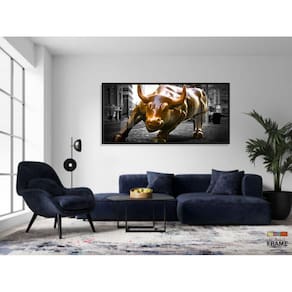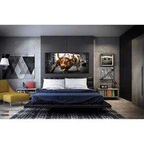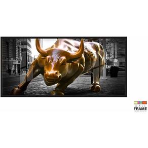 Quadro Decorativo Moderno Touro De Wall Street com 130x60 Moldura Preta 2x2