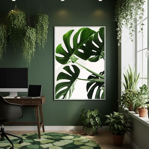 Quadro Decorativo Monstera E Galhos 70x50cm Mold Branca
