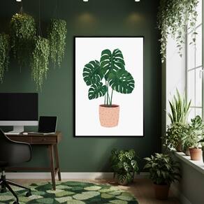 Quadro Decorativo Monstera Em Vaso 70x50cm Mold Branca