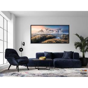 Quadro Decorativo Montanhas Neve Paisagem 130x60 Moldura Preta 2x2