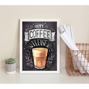 Quadro decorativo more coffee please 33x24cm - com vidro Moldura: madeira branca Informações do produto tire todas as suas dúvidas no descritivo abaixo: decoração para quarto, sala, cozinha, escritório, área gourmet e muito mais. Chega de paredes vazias medidas - cada peça tem 33x24cm a4 . Material do papel - papel fotográfico brilhante de altíssima resolução acabamento - todos os quadros são acompanhados de vidro para proteção da imagem. - moldura em madeira maciça na cor preta ou branca conforme produto escolhido e pendurador . - os quadros são embalados de forma segura com plástico bolha com camada dupla de acordo com o tamanho dos quadros. - de 3 meses. Meu quadro chegou. Como posso fixá-lo Você precisa apenas de um martelo e um prego, pois os quadros já vão acompanhados de penduradores. Esta é a forma mais indicada. Como posso limpar meu quadro A limpeza é feita como um móvel comum da sua casa. Apenas um pano seco ou espanador são suficientes para tal Marca: Não Informado