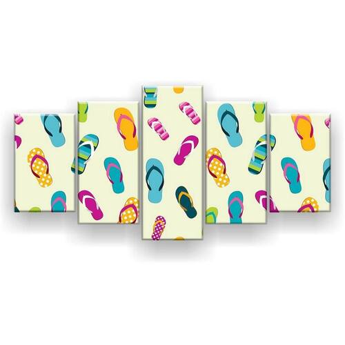 Quadro Decorativo Mosaico 5 Peças Chinelos Coloridos