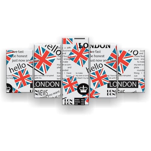 Quadro decorativo mosaico 5 peças london coroa Descrição excelência-variedades