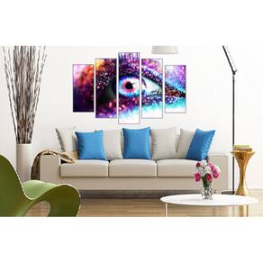 Quadro Decorativo Mosaico 5 Peças Mod1342 Olho Roxo Sombra Tamanho & instalação Tamanho total: 105cm comprimento x 60cm altura 1 peça central: 20x60 cm 2 peças laterais: 20x50 cm 2 peças laterais 20x40 cm Espaçamento entre as peças: 2 cm A instalação é bem simples, pois acompanha suporte para fixação em pregos ou parafusos, conforme queira. Para limpeza, utilize apenas um pano umedecido com água sem produtos químicos para garantir a durabilidade. Impressão & acabamento Nossos quadros são impressos em adesivo alto brilho, aplicado em mdf com espessura de 6mm. Não necessita de moldura, pois o acabamento das bordas laterais é feito em preto fosco no mdf - leia a descrição, possivelmente todas suas dúvidas estão nela. Decore sua sala, quarto, cozinha ou presenteie seu amigo com o quadro mosaico 5 peças mdf 6mm. Sua casa nunca mais será a mesma, coloque estilo onde você passará seus melhores momentos. Sua casa é seu espaço, seu aconchego, e quem olha pra ele tem que saber que ele é seu Sendo assim a eco decor criou pra você uma enorme variedade em quadros decorativos de cores e desenhos que seguem as últimas tendências de decoração. Decore seu espaço, seja com quadros para sala, quadros para área gourmet, quadros para quarto, quadros infantis, aqui você encontrará o que deseja artes descoladas, exclusivas e a preços acessíveis. Esperamos que se sinta à vontade e encontre aqui o seu estilo, e ao olhar pra o seu ambiente, seja ele qual for - possa dizer: agora meu ambiente está completo Material papel - adesivo vinílico fosco premium Tipo de impressão - impressão fotográfica em plotter digital de alta resolução com técnologia latex hp - a melhor do mercado em durabilidade. Finalização e acabamento - os quadros acompanham traves de mdf6mm para fixação na parede, basta apoiá-las sob os pregos ou parafusos não acompanha pregos ou parafusos Marca: Eco Decor Ean: 7891107304206