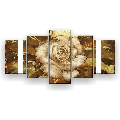 Quadro decorativo mosaico 5 peças pintura grande rosa branca Descrição excelência-variedades