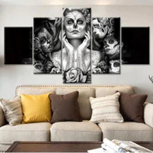Quadro Decorativo Mosaico De 5 Peças Caveira Mexicana Cinza
