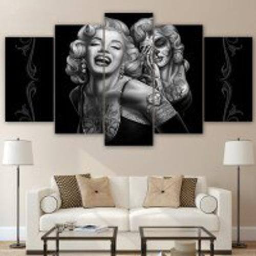 Deixe seu ambiente mais agradável com o Quadro Decorativo Da Kyme. O quadro além de ser muito bonito é de alta qualidade, fabricado em adesivo com uma excelente impressão. Os quadros decorativos são grandes aliados quando o assunto é decoração, suas cores irão trazer mais sofisticação para a sua sala, quarto, escritório, ou qualquer outro ambiente. O quadro é composto por 5 peças que se complementam, para deixá-los perfeitos em sua parede deixe um espaço com cerca de 1cm entre uma peça e outra, assim as imagens irão se complementar e você terá um resultado fantástico. Composição: 05 Quadros com tamanho total de 115 x 60 cm Peças menores: 02 unidades - 22 x 35 cm Peças médias: 02 unidades - 22 x 50 cm Peça central: 01 unidade - 22 x 60 cm Espaçamento entre as peças: 01 cm Especificações Técnicas: Produto: Quadro decorativo Quantidade: 5 peças Material: Adesivo Brilhante Tamanho total C x A : 115 x 60 cm Madeira: 6mm Cor: Colorido Modelo: Marilyn Monroe Tatuagem Instalação: Fita Dupla Face Conteúdo da embalagem: 1 quadro composto por 5 peças Marca: Kyme Quadros Ean: 8991523907759