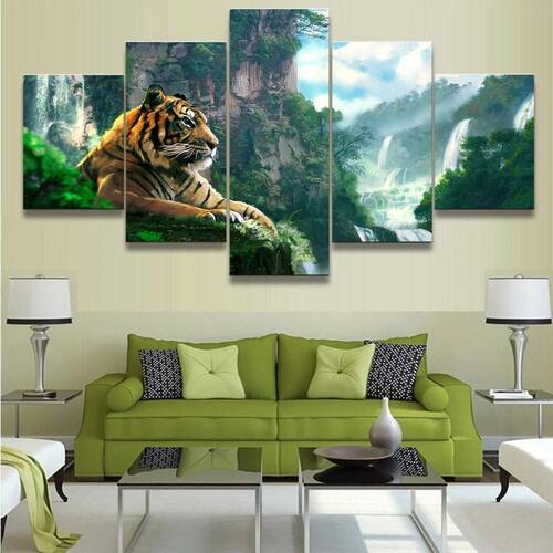 Quadros são itens indispensáveis para dar aquele toque especial na decoração do ambiente. A Kyme Quadros vai te ajudar a decorar sua casa, escritório, salão, comércio ou eternizar momentos, presenteando quem você ama. Além de serem lindos e duradouros, os produtos são feitos em adesivo brilhante e a impressão é de alta qualidade. Características: - Acompanha fita adesiva indicada para colagem em paredes sem textura , evitando assim que você precise furar ou danificar superfícies. - O acabamento possui impressão nas bordas, trazendo efeito visual de borda infinita dica de instalação: para que o encaixe visual da imagem fique perfeito, posicione as telas lado a lado, garantindo que o espaçamento entre elas não ultrapasse 1cm. Ficha Técnica Marca: Kyme Quadros Modelo: Tigre Na Selva Quantidade: 5 peças Material: Madeira de 6mm Impressão: Adesivo Brilhante Medidas: 2 peças 22 x 35 cm 2 peças 22 x 50 cm 1 peça 22 x 60 cm Conteúdo Da Embalagem: Quadro Decorativo Mosaico De 5 Peças Tigre Na Selva Marca: Kyme Quadros