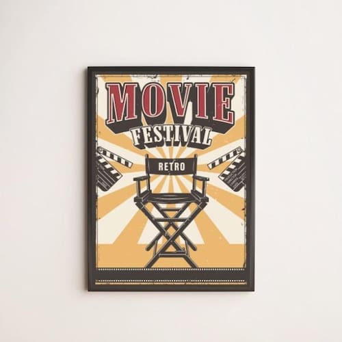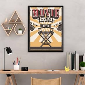 Quadro decorativo movie festival retrô 33x24cm - com vidro Moldura: madeira preta Informações do produto tire todas as suas dúvidas no descritivo abaixo: decoração para quarto, sala, cozinha, escritório, área gourmet e muito mais. Chega de paredes vazias medidas - cada peça tem 33x24cm a4 . Material do papel - papel fotográfico brilhante de altíssima resolução acabamento - todos os quadros são acompanhados de vidro para proteção da imagem. - moldura em madeira maciça na cor preta e pendurador . - os quadros são embalados de forma segura com plástico bolha com camada dupla de acordo com o tamanho dos quadros. - de 3 meses. Meu quadro chegou. Como posso fixá-lo Você precisa apenas de um martelo e um prego, pois os quadros já vão acompanhados de penduradores. Esta é a forma mais indicada. Como posso limpar meu quadro A limpeza é feita como um móvel comum da sua casa. Apenas um pano seco ou espanador são suficientes para tal