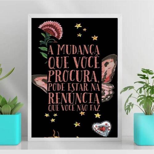 O Quadro Decorativo Frase Mudança Renuncia é perfeito para dar um toque especial à decoração de qualquer ambiente. Com medidas de 33x24cm A4 , ele pode ser utilizado em quartos, salas, cozinhas, escritórios, áreas gourmet e muito mais.